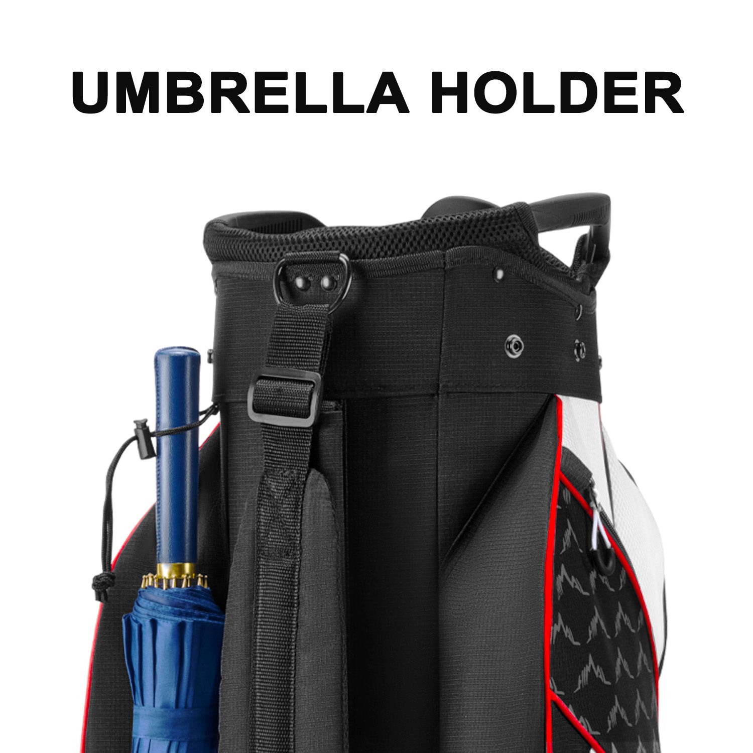 Convenient Features:Includes adjustable drawstring to securely hold an umbrella and hooks for gloves and towels, adding to the bag's overall functionality. This makes it an excellent choice among golf cart bags for men who need convenience and organization on the course